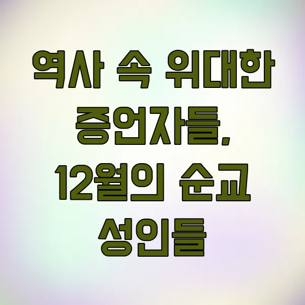 12월은 또한 용감하게 신앙을 증언하다 순교한 성인들을 기억하는 달이기도 합니다. 이분들의 삶은 우리에게 신앙의 가치를 다시 한번 생각하게 합니다.
