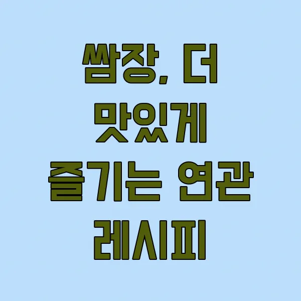 [일반정보] 본 게시물은 쌈장 만드는 방법에 대한 일반적인 정보 제공을 목적으로 하며, 특정 제품의 효능이나 효과를 보증하지 않습니다. 모든 정보는 공개된 자료를 바탕으로 작성되었으며, 사용자의 건강 상태나 의도에 따른 결과에 대해 책임을 지지 않습니다.