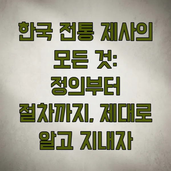 [면책 조항] 본 콘텐츠는 한국 전통 제사에 대한 일반적인 정보를 제공하며, 특정 종교적 신념이나 개인의 상황에 따른 해석을 강요하지 않습니다. 제사 절차나 방식은 가풍이나 개인의 신념에 따라 달라질 수 있으니, 가족 및 전문가와 상의하여 진행하시기 바랍니다.