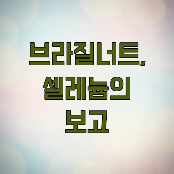 셀레늄은 우리 몸이 스스로 만들어내지 못하는 필수 영양소이기 때문에 반드시 외부 섭취를 통해 보충해야 해요. 브라질너트는 이러한 셀레늄을 효과적으로 공급해 줄 수 있는 자연의 선물입니다.